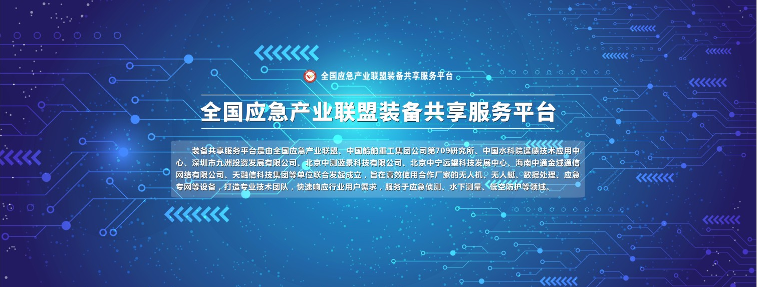装备共享服务平台是由全国应急产业联盟、中国船舶重工集团公司第709研究所、中国水科院遥感技术应用中心、深圳市九洲投资发展有限公司、北京中测蓝景科技有限公司、北京中宁远望科技发展中心、海南中通金域通信网络有限公司、天融信科技集团等单位联合发起成立,旨在高效使用合作厂家的无人机、无人艇、数据处理、应急专网等设备,打造专业技术团队,快速响应行业用户需求,服务于应急侦测、水下测量、低空防护等领域。