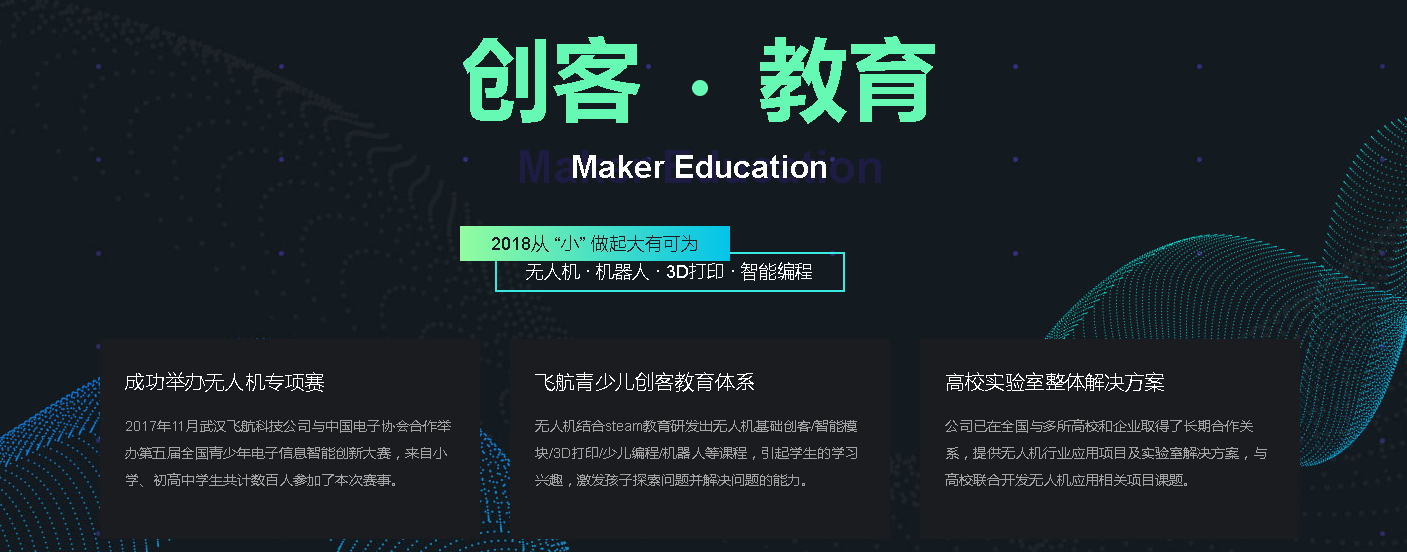 飞航创客教育是针对中小学不同年龄段的创客课程。课程主要包括创客基础教育、创客少儿编程、创客开源硬件、创客3D打印等等。课程主要培养孩子的创新意识、动手实践、团队合作以及领导力等能力。课程主张引导式教育,引导孩子透过现象看本质,让孩子了解当今科技,在开拓孩子眼界的同时锻炼解决问题的能力,训练孩子多元化思考。