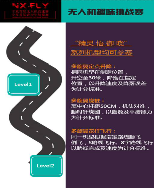 2017宁夏首届无人机竞速赛是“中国飞来者大会暨第三届银川西部航展”活动的重要组成部分,本届大赛以“推动无人机应用技能创新,促进通用航空职业教育发展”为主题,是一项应用技能创新实践活动,是融科技型、实用性、趣味性于一体的面向全国职业院校及青少年群体的大型通用航空科普活动,也是一项兼具无人机应用技能创新与航空职业教育双重特点为一体的通用航空文化活动。特制定本实施方案如下: