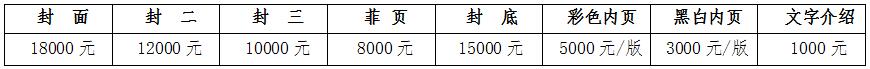 2. 会刊广告:注:标准展位含楣板一块、射灯两盏、洽谈桌一张、椅子两把、一个纸篓、可容220V/5A电源插座一个,订光地的展商自行负责展位布置的所需费用并需向展览馆缴纳特装管理费(详见《参展商手册》)。