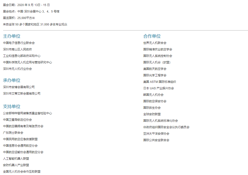 | 主办单位 | 中国电子信息行业联合会 深圳市南山区人民政府 工业和信息化部政府采购中心 中国科学院无人机应用与管控研究中心 深圳市无人机行业协会 |