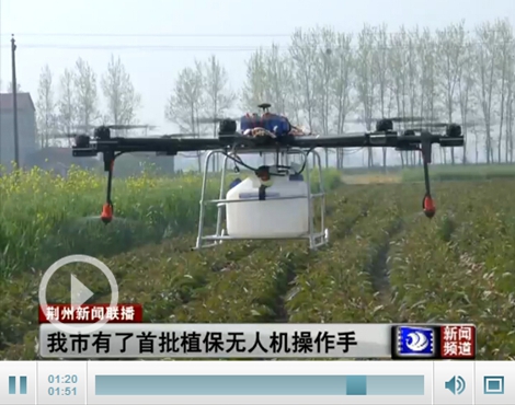 随着科技的发展,越来越多的新型机械被应用到乡亲们平时的农业生产中,其中,用于喷洒农药防病治虫的无人机就是近几年脱颖而出的一种新型机械。为了提高无人机使用水平、加快推广速度,荆州市农业部门和无人机生产商家专门组织了一次培训会。今天(4月12日),荆州市第一批无人机操作人人员举行了培训结业仪式。