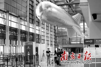 记者15日在深圳会展中心看到,一些夺人眼球的展品已经亮相,观众一进入会展中心二楼平台,就可以看到高高升起的
