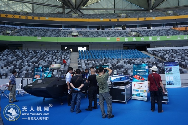 科微智能技术人员在展会主办方的安排下,在展会主办场地深圳大运会场外进行了演示,体现了科微智能无人船的灵活操控性及检测设备运作,并使用无人机跟踪拍摄。为现场观众带了一次智能化无人科技的领先技术展示。