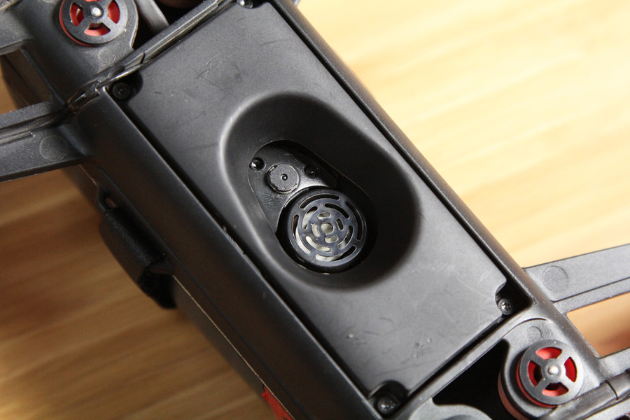 时机身底部配备了一个有效距离达到8米的超声传感器,一个压力传感器以及一个用于