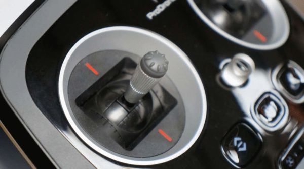 遥控器摇杆在顶端采用灰色塑料,设计的非常美观显档次,但是摩擦度有点不够,如果是新手使用单指操控方式飞行容易会出现打滑脱杆的现象,建议厂家把摩擦度加大一下以尽量减少脱杆导致的风险,另外,摇杆的长短不能调节,有点不方便。
