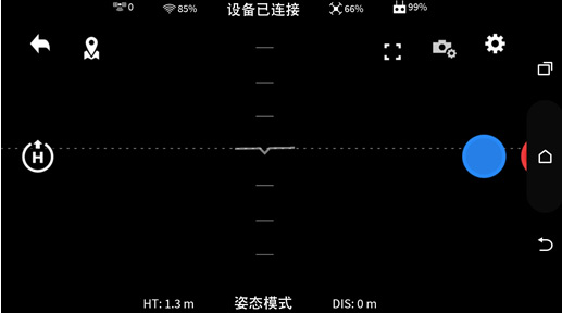 6:地面站测试,这款无人机有针对安卓系统和IOS系统的APP,高清图传的画面有一点延时,但基本上无碍飞行体验。