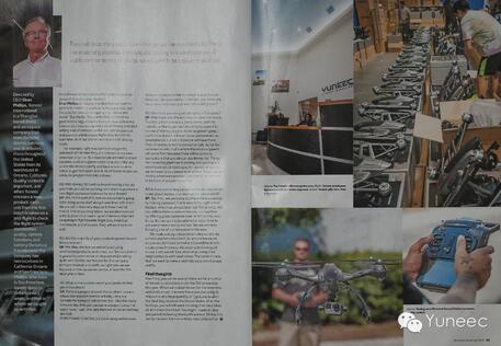 消费级别上。RD:您认为未来五年,YUNEEC将会发展成什么样子?SP:预见未来有多种方式。首先是从收益上预测,这个行业会逐渐壮大,我们希望成为其中的一个”大咖“。虽然未来无人机不会像智能手机一样占据主导,但会非常普及。从商业角度来说,无人机的运用领域会越来越广,将推动无人机行业显著发展。未来人们可以将无人机运用在很多领域。例如监控工厂内的流水线并进行分拣和包装;当然,我们希望YUNEEC的无人机可以贡献所有领域,成为一个真正的”大咖“。现在,我们是硬件供应商,未来,我们希望能够延伸至系统领域。RD:关于YUNEEC,还有什么您想要为我们读者普及的吗?SP:好的。首先,我们在尝试研发产品,让飞行变得简单,开箱即飞已成为我们的优势。与行业竞争对手相比,我们致力于提供更优质的客户关怀。虽然花费很大,但我们希望能够最大程度满足顾客需求。当然,我们在客户服务这方面注入了大量资源。在设计方面,我们最近商议了一个决定:为我们的无人机创造一个稳定的平台,这样,不容易失去控制并且能够拍摄更流畅的影像。我们还要降低无人机产生的噪音,以免我们的飞行员担心打扰他们的邻居。我们的基准是让无人机更容易操作,让飞行变得更加容易。结语今年,在圣诞树下,一定会有很多YUNEEC的无人机。在我们做这次专访的时候,他们正在准备舶出大量台风系列产品到