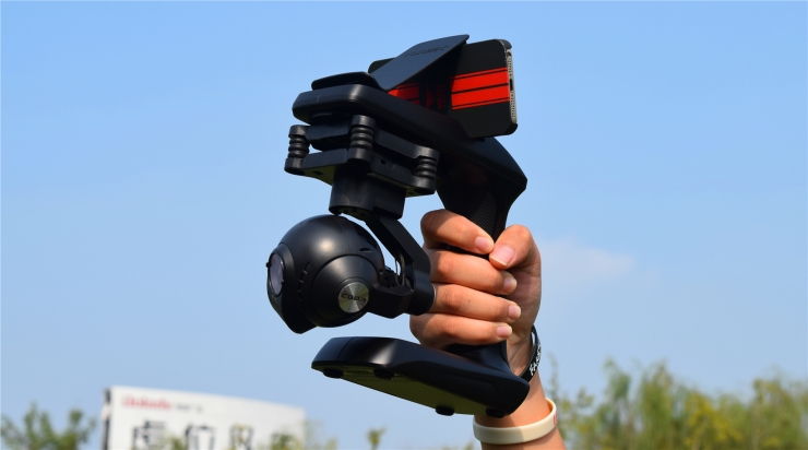 另外值得一提的就是一个手持稳定器手柄,这也是个亮点,可以把Q500上面的云台和相机装直接装上去,上面再卡住一台手机,通过APP就能在使用这个带有三轴增稳的相机,手持云台跟无人机是一起的,无需额外购买,业界良心。