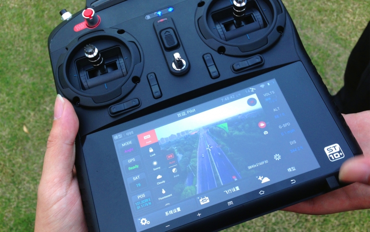 一体式的设计首先就会方便很多用户的使用,不在需要架一个手机当屏幕了,也免去了飞行过程中意外来电的尴尬,当然这个成本是算在消费者头上。另外,没有了与手机的适配问题,所以YUNEEC在稳定性方面再加一分。内置了Android操作系统,在遥控器上就能解决很多问题,比如新手模式的解禁,美国式/日本手的切换等等,相当方便。