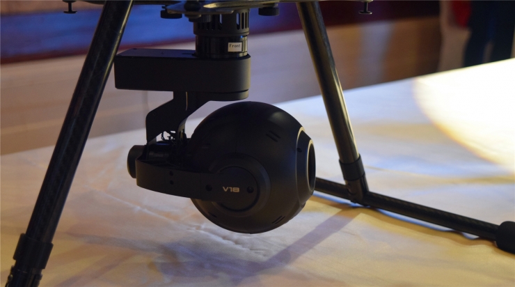 H920体型更大,所以下面能挂载的相机种类也会更多样化。V18是可以实现18倍变焦的摄像头,通过地面站上的控件就能实现远程变焦。售价不菲的V18主要用途据是在安防领域,比如说高空抓拍车牌什么的。