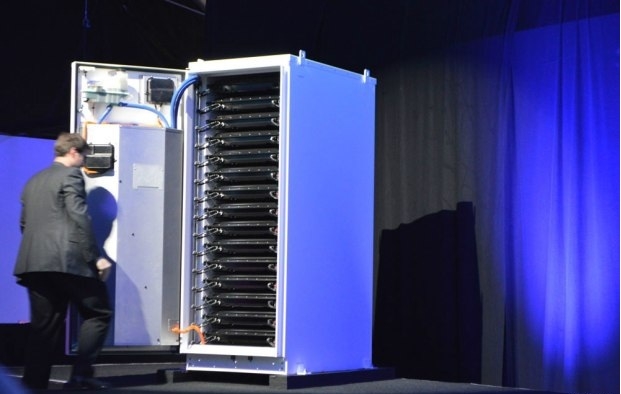 Musk把他们的储能电池组叫做“Powerwall”,这让特斯拉看起来既像是造车的也像是造电池的。面向有大需求的客户群体特斯拉设计了一种大号电池叫“Powerpack“,在客户有更大的储能需求时,可以把几百个powerpack接起来一起用。Musk就曾经描绘过整个城市都可以靠附近的太阳能发电站和储能电池模块提供电力的场景,他本人就曾在上个月的一次演讲文案中提到这一点。