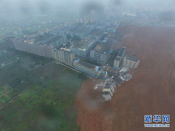 2015年12月20日11时40分许,广东深圳市光明新区凤凰社区恒泰裕工业园发生山体滑坡,附近西气东输管道发生爆炸。这是12月20日新华网无人机航拍的事故现场。