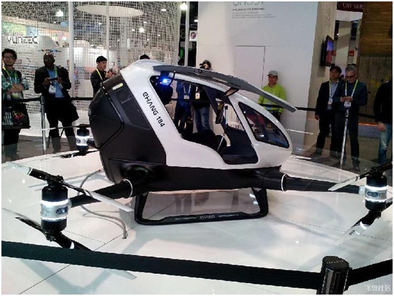无独有偶,中国智能无人机公司亿航,于拉斯维加斯2016 CES国际消费类电子产品展览会上,全球首发全电力低空自动驾驶载人飞行器——“亿航184”!它的出现,第一次实现了人类的全自动驾驶飞行,在设定飞行计划后,乘客只需在机载应用中指定目的地,一键下达“起飞”指令,凭借亿航低空服务指挥调度中心的实时在线服务,亿航184即可完成自动驾驶,轻松抵达指定目的地。
