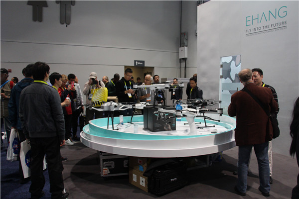 在2016年国际消费电子展(1月6日)上,来自中国广州亿航智能技术有限公司展位前,人头攒动,各种肤色之人等,人手一具拍摄工具,对一无人机载人神兽进行狂拍。原来,这几天被全球无数媒体纷纷报道的”无人机载人神兽“,就是该公司在世界顶级消费电子展上向全球首发中国制造之首款可载人无人机。