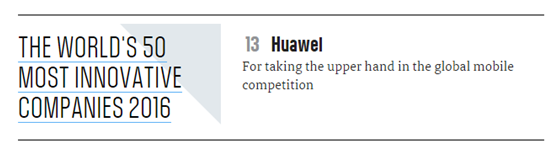 华为作为唯一入选该榜的中国企业,因“在全球移动竞争中占据上风”位居第十三。