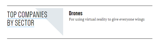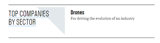 在无人机领域的10佳创新企业评选中,中国有两家无人机企业入选,分别为大疆创新和亿航。