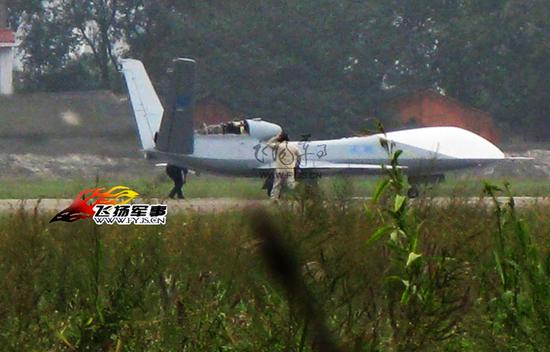 近日,网上出现了我国最新型无人机地面测试的照片,从外形来看,这是一架采用喷气式发动机的高空长航时无人机。