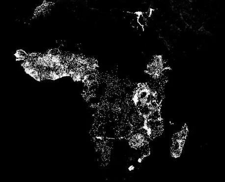 斯坦福大学研究人员使用机器学习算法比较非洲夜间照明(电力与经济活力之间存在正向相关性)和昼间公路、城区、水体、农田的卫星图像
