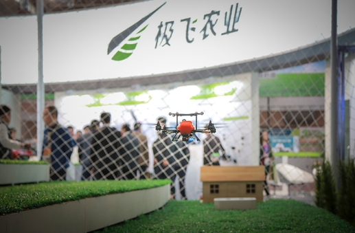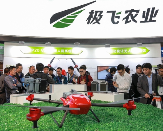 4月18日,极飞农业携最新一代植保无人机系统——P20 V2亮相第七届中国国际现代农业博览会。中国农科院原院长翟虎渠、农业部规划设计研究院院长朱明、中国工程院院士罗锡文、华南农业大学“千人计划”特聘教授兰玉彬一行,在开幕仪式后来到极飞的展台,参观了P20 V2的模拟演示区和喷洒系统。