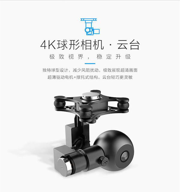 全新上市的球形相机,搭载安霸A9编码芯片,并采用了iPhone手机通用的索尼IMX COMS传感器,保障优良画质。FOV拍摄视角可达93度,极大降低了镜头畸变,还原真实高清画面。搭载自主设计的轻量化球形相机云台,通过轻薄驱动电机和撑拖式结构,细微震动亦可轻松过滤,得到清晰、稳定的航拍画面。