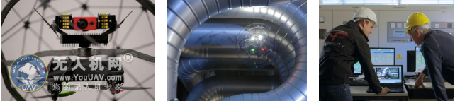 Elios 拥有一个 HD 高清摄像头,一个热摄像头和一个非常强大的 LED 照明系统,它同时还拥有一个非常稳定的数字视频传输系统,即使在视线外,甚至在金属环境中飞行,视频都会实时无误的传输。经过一年时间的实地测试,我们和能源,石油,天然气,核电站,海事,重工业等客户一起验证了 Elios 在这些领域里的各项检测功能。Elios 被用在检测发电厂的锅炉,压力容器,货舱液罐,工业炉等等密封,危险,复杂,甚至完全黑暗的空间。