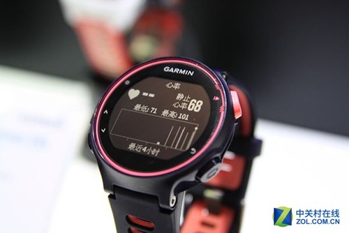 自从去年Garmin发布Elevate光学心率计以来,光学心率迅速渗透进了Garmin几乎各个系列的腕表和手环产品中。铁三表属于Forerunner系列中的顶级产品,Forerunner 735XT采用了彩色圆形屏设计,直径3.1cm,分辨率640x960。外观上和235十分相像,只是表盘略小了一点点。735XT内置了GPS+GLONASS双定位、气压式高度计和Elevate光学心率计,支持跑步、游泳、单车、徒步、划船、滑雪、越野跑、有氧运动、桨板冲浪以及铁人三项等多种运动模式,不过游泳模式下依然无法开启光学心率监测功能,需要配合HRM-Tri或HRM-Swim心率带进行水下心率记录。