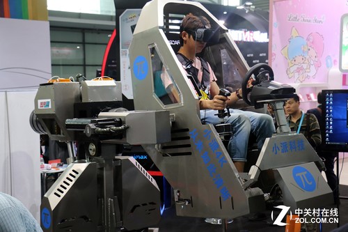 小派4K是首款配备了4K分辨率的VR设备,配置双陀螺仪、延迟控制在18ms、视场角110度、53mm业界最大口径双非球面镜片、220g的重量在PC机VR头显里应当算是最轻的一款了。另外小派科技还在CESA的展台布置了一架虚拟太空舱,让VR的沉浸感体验又上升了一步。