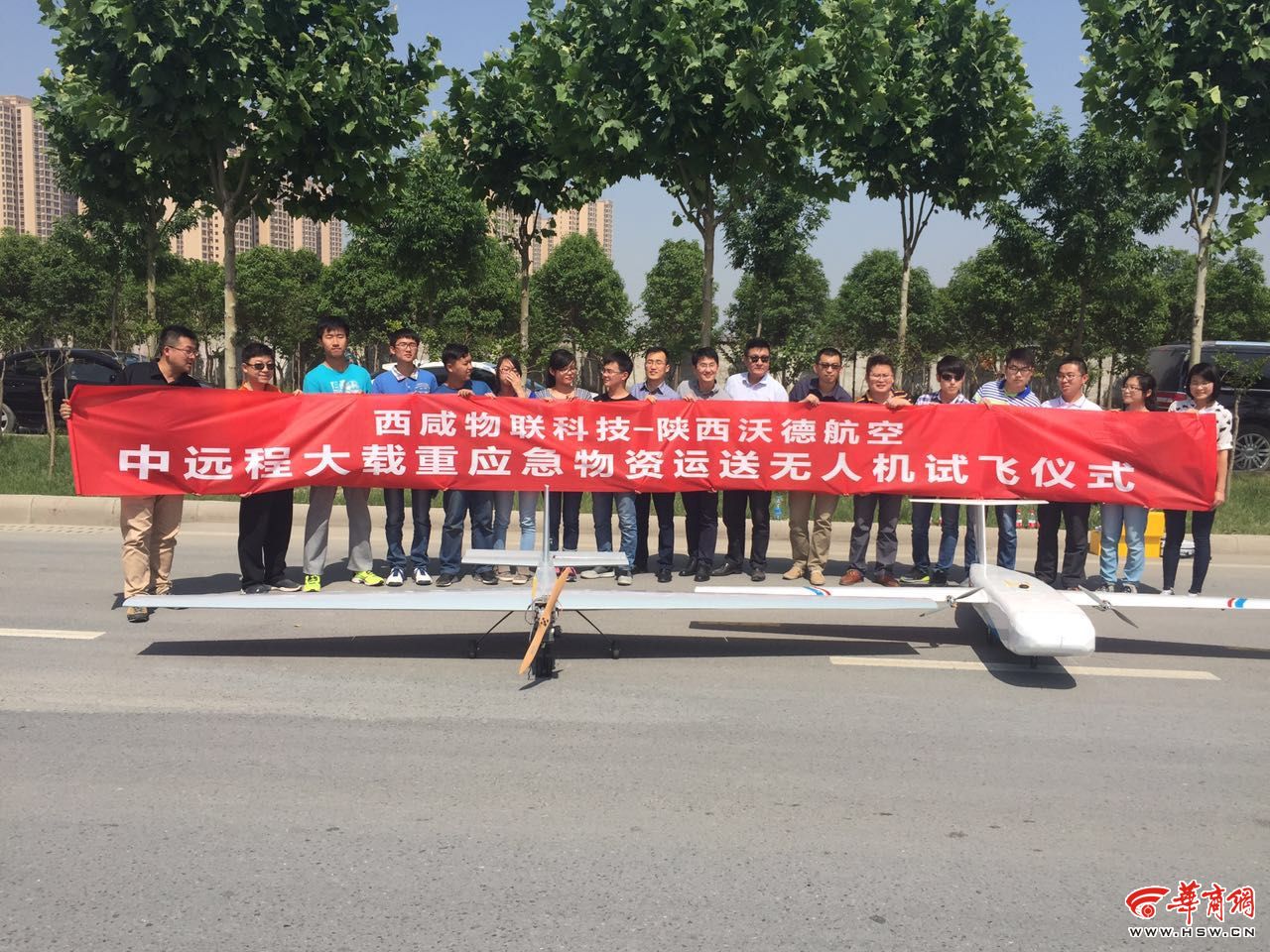 这架高效能应急物资运送无人机由西咸物联科技与陕西沃德航空联合研制。