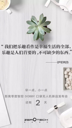 无人机圈近日迎来两大好消息,一是专业无人机厂商零度智控(ZEROTECH)备受期待的消费级“口袋无人机”DOBBY将于本月25日召开新品上市发布会,记者再其官网上看到发布会已进入倒计时。而在同一天,传了两年的小米无人机也将上市。