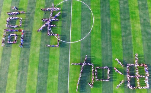 河南农业大学400多名大学生身着统一服装,伸出右手大拇指组成“高考加油”字样,为考生点赞。无人机航拍记录下了河南农大对高考学子的诚挚祝福。据河南农业大学公共体育部副主任卢红振老师介绍,此次活动是学校“第一届健康活力走”活动的一个环节,呼吁全社会在高考期间给予全体考生关爱,营造良好的社会氛围,为考生取得好成绩尽一份力。