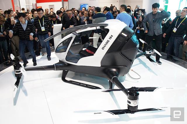 “亿航 184”看起来像是放大版的四旋翼无人机,配备了8个推进器。这款飞行器的高度近5英尺(约合1.52米),重量为440磅(约合250千克),但运载能力仅为220磅(约合100千克)。亿航表示,184是一款自动驾驶的航空器,乘客只需在智能手机应用中输入目的地,即可直接抵达。