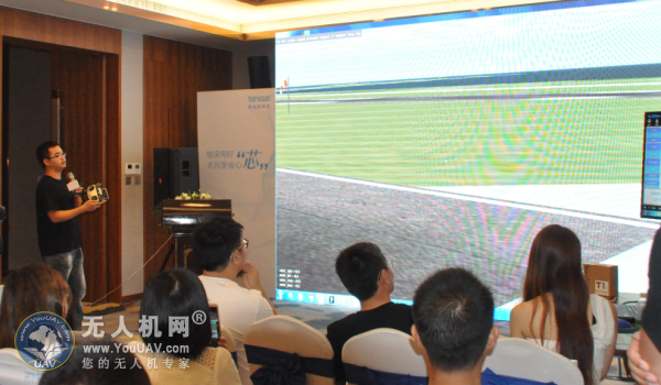 同时,TopXGun拓攻CTO—尹亮亮在现场演示了搭载T1-A飞控的无人机进行植保作业时的操作模式,该操作模式不仅精准和便捷,跟传统的植保无人机作业时的操作方式相比,搭载T1-A的无人机在作业的整个过程中基本实现了自动化。