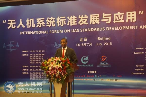 来自ISO TC20/SC16的美国航空工业协会(AIA)Cortney A Robinson先生介绍了以国际民航组织(ICAO)为核心的六大全球无人机系统标准化组织,并介绍了ISO TC20/SC16的无人机标准管理模式。