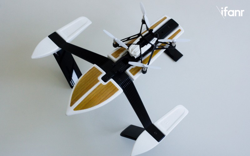 但是曾经上过苹果大会舞台做演示的 Parrot 则想出了另类玩法,让四轴飞行器驰骋水面。