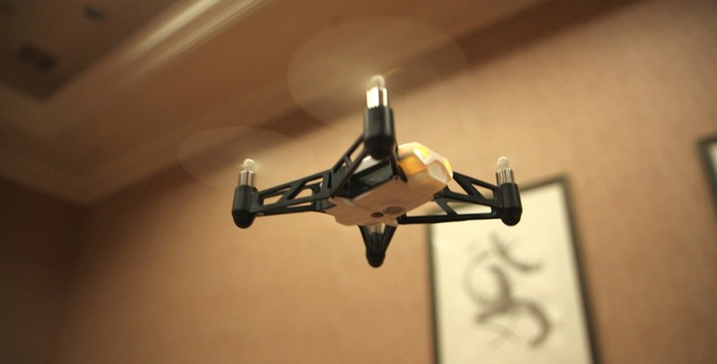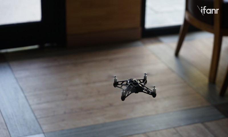 无人机是标准的四轴飞行器,通过蓝牙与手机 App 连接,可独立飞行控制,遥控距离约 20 米,并且拥有很好的悬停效果,还可以做翻滚动作。