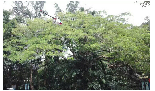 还好,救星来了!!!近日,一直专注于农用无人机技术创新的天鹰兄弟携带单旋翼植保无人机来到了东湖公园,高效,省时又省力地杀虫,重新还了凤凰木一片青葱!东湖公园管理处表示,凤凰木为高大落叶乔木,最高达20余米,传统喷药有难度,效果不佳, 这次引进天鹰兄弟单旋翼植保无人机对虫害进行防治,也是由于单旋翼无人机旋翼相对较长,下旋风力大,穿透力强,飞行中产生的下旋气流,可将 药液喷洒到凤凰木的根茎部,使用该机型施药,雾滴分布均匀、沉降效果好,杀虫效果很明显,能有效控制病虫害的蔓延,在短时间内紧张的施药时期,一架飞机可取代90名劳动力。再加上是远距离遥控作业的方式,有效的避免了操作人员与农药的接触,保护了操作人员的人身安全。