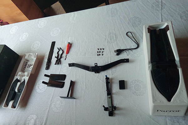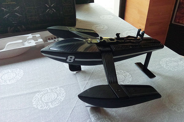 parrot Hydrofoil主要组成部分有minidrones小型无人机,以及船体部分。开箱时无人机就是组装好的,而船体部分需要使用螺丝刀(自带)组合起来。主要的船身材料为发泡聚丙烯塑料和聚酰胺,简单的理解为泡沫就好了。这样的设计主要是为了让船体尽量轻,才能更好的漂浮在水面上,也不会影响行进方向。