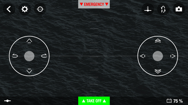 进入后还算是比较容易上手的控制界面。当按下take off起飞后,minidrones便启动便在一个不高的位置悬停,除了控制上下转身往前后左右飞之外,比较酷的是,可以在右上角选择几个特技表演,点击选择要完成的动作后,双击屏幕空白处就可以了,这个非常酷,也是我最乐意在外面展示的“技能”。
