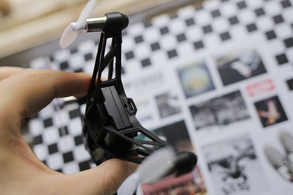 如果只选择飞行模式,那只需要拿个非常轻的minidrone就可以了。首先,这个无人机很小,长度也就跟iPhone6差不多。电池有550mAh,直接插入无人机中间部分。parrot Hydrofoil的续航在空中可飞行9分钟,在水中大概7分钟,虽然充电速度也快,配一块备用电池还是比较需要的。充电口是普通的microUSB接口,可以用各种方式充电。(如果出去玩的话带移动电源是最方便的)