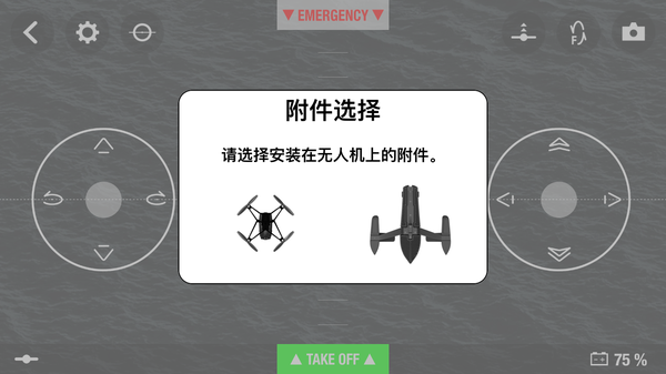 连接后,在APP的侧边栏有状态显示。此时首页的第一个版块也从观看视频变成了自由飞行。进入后,首先选择的是模式,如果要控制无人机飞行则选择第一个飞行模式,如果要连接船体在水中前行则选择第二个船只模式。