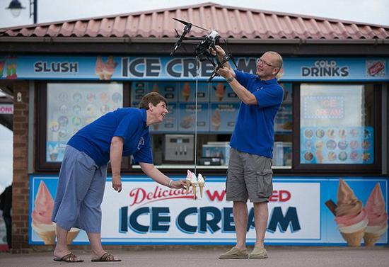 沙滩爱好者们再也不用浪费时间跑去商店购买冰激凌了。近日,无人机传送冰激凌的工具在林肯郡的梅布尔索普进行了成功试验,用类似篮筐的工具运载冰激凌,一次性可以运载4支,该工具与无人机主体以金属杆相连,以保持稳定。该运输方案正在等待民航局批准,以确保海边游客的安全。