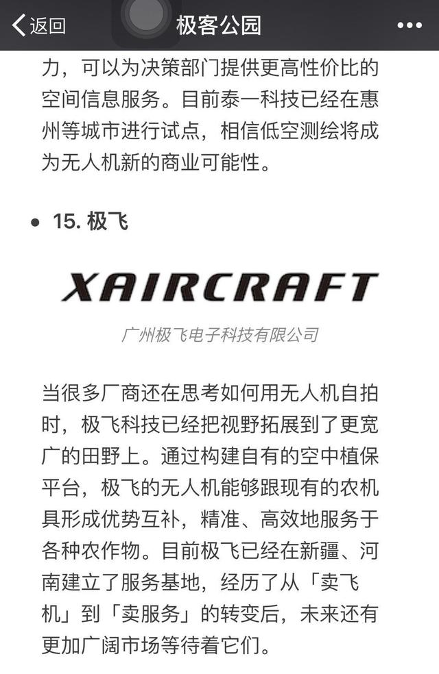 极客公园评价极飞“经历从卖无人机到卖服务的转变”,市场变得更广阔