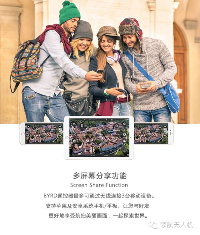 独有的双遥控器和多屏分享设计,使得无人机的用途不仅仅停留在航拍,更是一种全新的互动方式和生活形式,让飞行变得有趣起来!