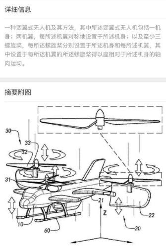 据悉这款产品的亮点在于“固定翼+3小旋翼”的设计,据企查查显示,这个获得了发明专利(如上图)。飞机借助3个小旋翼可以垂直上升、下降,不像固定翼受限于需要长跑道助跑,再者金良告诉我,上升到一定高度后,便是固定翼起主导作用,在同样使用电池的情况下,航程是旋翼机的3倍以上,载重是旋翼机的2倍以上。智航给到的这架无人机的具体参考系数便是,载重3公斤、飞行1~2小时、航程60~80公里。此外,据介绍称,它拥有两个飞控能提供更加安全稳定的飞行。