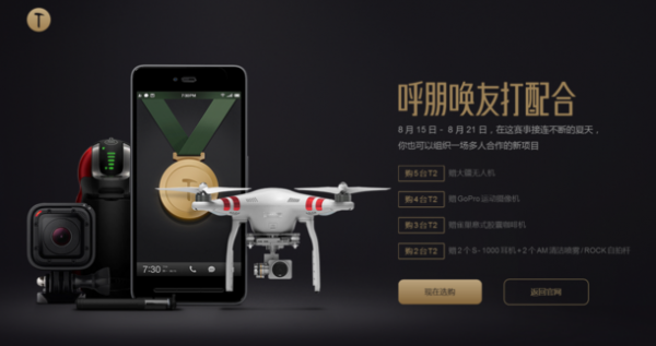 2.买4台锤子T2送GoPro;