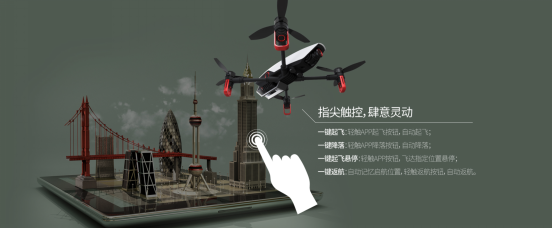 在APP的界面设计上,从未像这样贴近消费者的内心需求,实现真正的智能操控。创新一键定高/定距设计,在界面上左右两侧分别有两个滑条,只需按住滑动,就能轻松设定飞行距离和高度,点击确认按钮,飞行器起飞至指定航点。