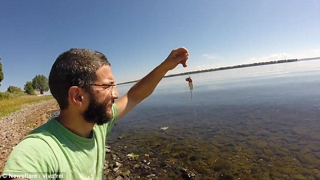 不一会儿,弗雷看到有鱼从水里跃起,咬住诱饵,最终钓鱼成功。弗雷迅速地将鱼拖回岸边,十分高兴。他后来在YouTube上写道,起初他并不奢望可以成功,因为之前试了几次都以失败告终。这次意外收获让他感到兴奋不已,拍照留念后他最终将鱼放生。