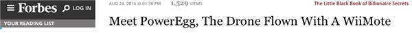 关注用户体验的Forbes(福布斯)则重点报道了PowerEgg的另一亮点:体感遥控设备。报道称,PowerEgg无人机的革命性体感操控模式,极大降低了普通人航拍的门槛,一键控制起降、一键环绕、一键拍照的功能让小白用户也能轻松上手,平滑流畅的操作让用户享受到轻松的智能飞行,“感觉像是在玩游戏机一样容易操纵”。