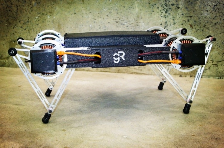 Minitaur 最大的特点在于它是依靠“电机直接驱动”的,这意味着在电机与每条腿之间,没有齿轮传送、弹簧、驱动关节、齿轮箱这样的装置。